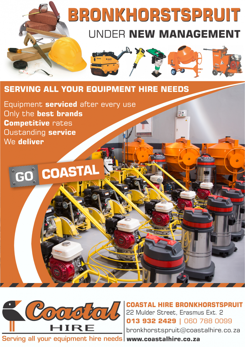 Coastal Hire Bronkhorstspruit opened under new management on 7 January 2019. We welcome Micheal Reynecke to the Coastal Hire family and wish him the best of luck with his new business venture.