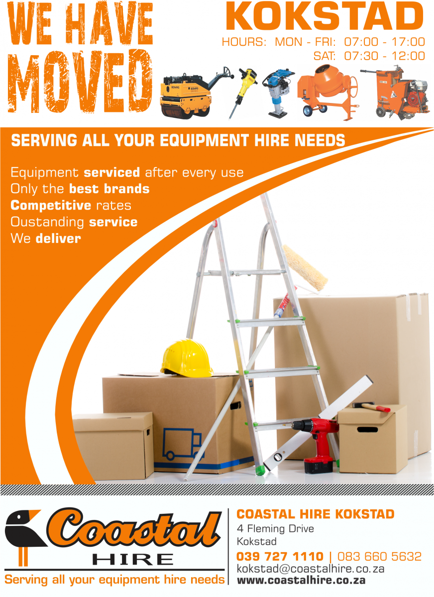 Coastal Hire Kokstad has moved and is now located at 4 Fleming Drive, Kokstad.