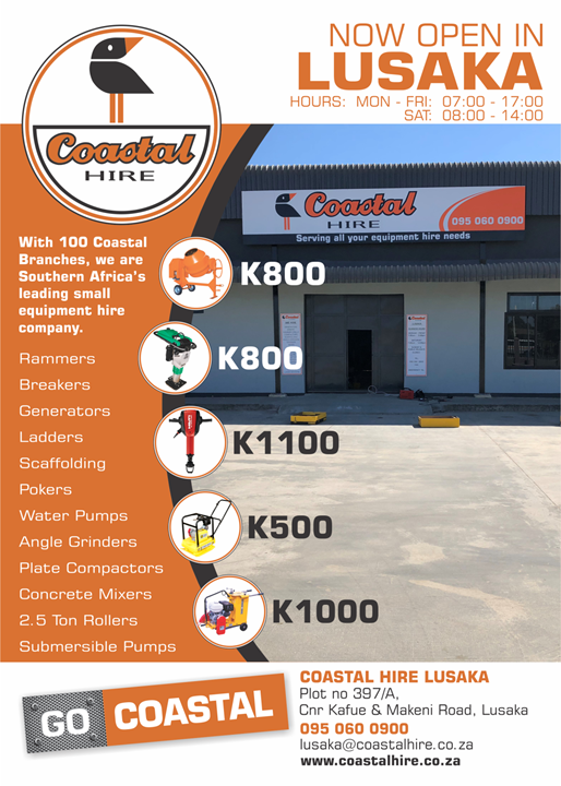 Coastal Hire Lusaka can be found at Plot 397A Makeni Road (Next to Universal Gym), Makeni, Lusaka or contact them on +260 950 600900