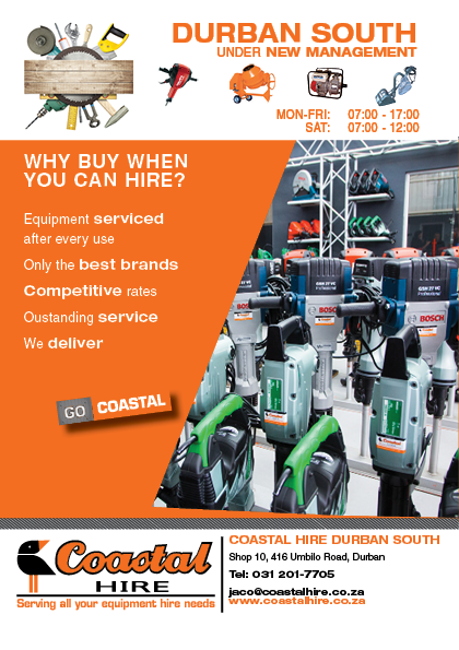 Visit the Durban South branch at Shop 10, 416 Umbilo Road, Durban or give them a call on 031 201-7705 or email jaco@coastalhire.co.za