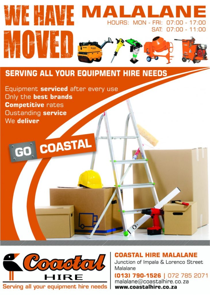 Coastal Hire Malalane has moved and is now located at Junction of Impala and Lorenco Street. The branch contact telephone numbers remain unchanged. Contact Coastal Malalane for all your equipment hire needs.