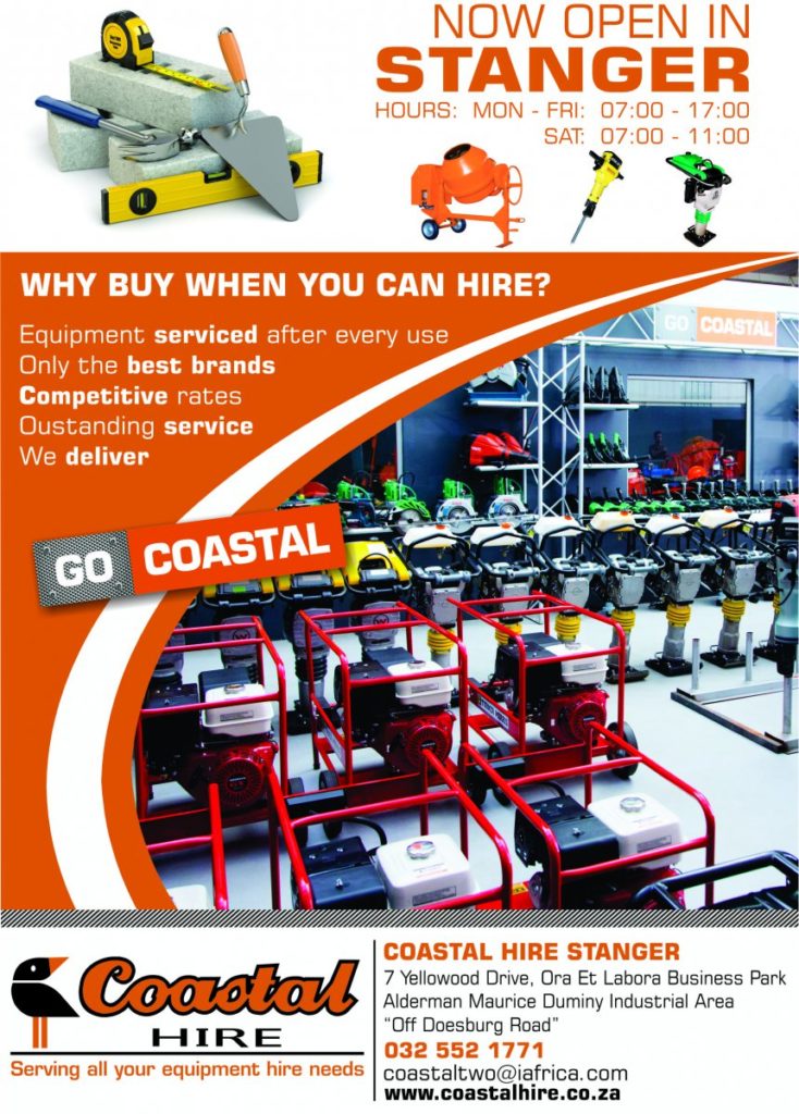 Special Congratulations to Allan Senior, Allan Jnr and Brad Johns in opening their new store in Stanger. We wish them the best of luck with their new store. Coastal Hire Stanger will be Coastal Hire’s 100th Store added to the national foot print trading through Southern and South Africa Coastal Hire thanks all our franchisees, […]